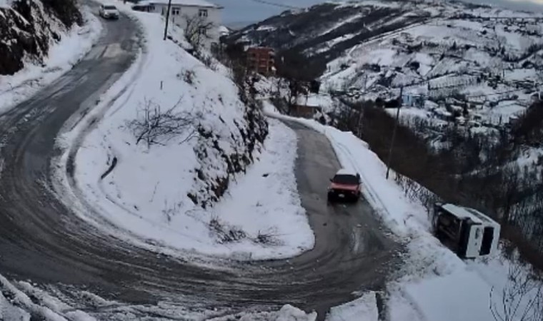 Trabzon’un Akçaabat ilçesinde keskin ve karlı virajda sürücüsünün direksiyon hakimiyetini kaybettiği minibüs uçuruma yuvarlandı. Kazada 1 kişi hayatını kaybetti, 1 kişi yaralandı, kaza anı güvenlik kameralarına yansıdı.