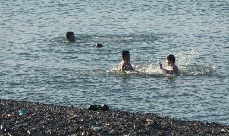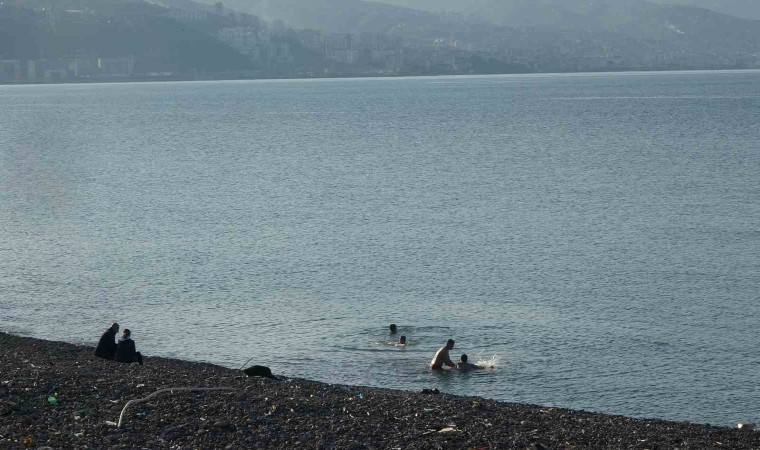 Trabzon’da son günlerde hava sıcaklığının mevsim normallerinin üzerinde seyretmesini fırsat bilen bazı gençlerin denize girdiği gözlendi.