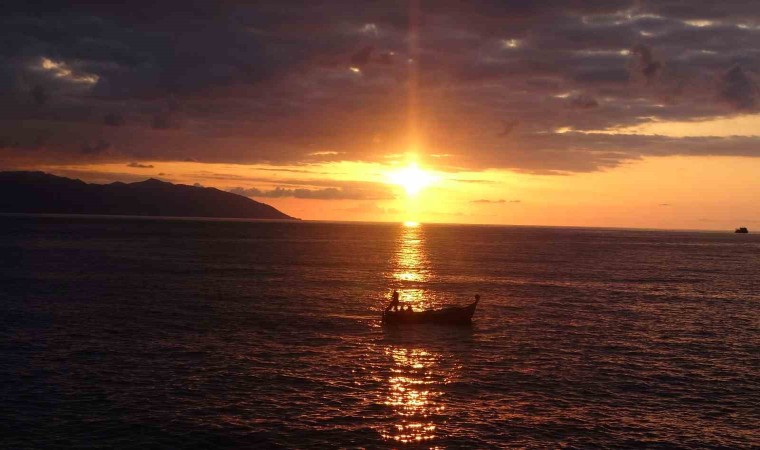 Belirli saatlerde hareket eden gezinti teknesi özellikle sahile yakın seyrederek yol alırken, küçük balıkçı tekneleri de günbatımına doğru denize açılmayı tercih ediyor.
