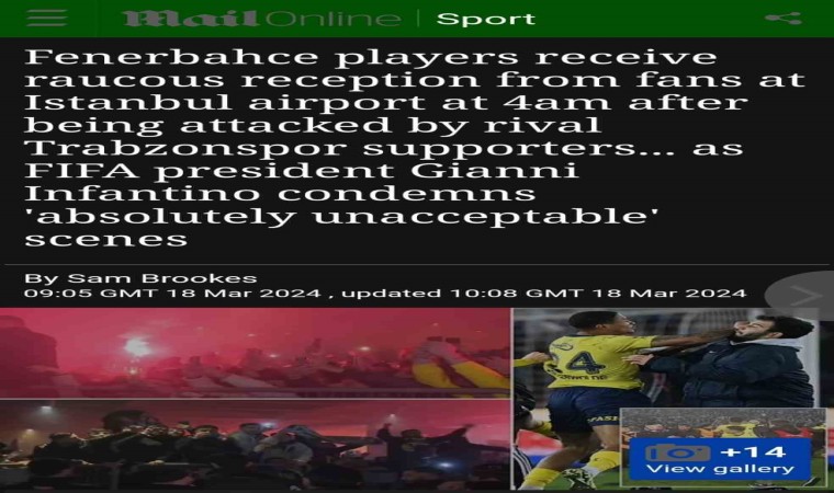 İngiliz Daily Mail gazetesinde de Trabzon’da yaşanan saha olayları geniş yer buldu. Gazete, ’Şiddet sahneleri’ baslığıyla verilen haberde, “Pazar gecesi Fenerbahçe’nin 3-2 kazandığı, Manchester United’ın eski orta saha oyuncusu Fred’in iki gol atmasının ardından Chelsea’nin eski forveti Michy Batshuayi’nin galibiyet golünü attığı dramatik Süper Lig karşılaşması bitişiyle patlak verdi. Sahaya meşaleler ve başka nesneler fırlatan Trabzonspor taraftarları, son düdükten sonra saha içini işgal etti. Batshuayi’nin bir taraftara dönen tekme attığı görüldü, eski QPR yıldızı Bright Osayi-Samuel de taraftarlara karşılık verdi” değerlendirmesi yapıldı.