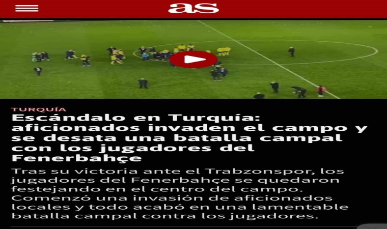 İspanyol AS gazetesinin, ’Türkiye’de Skandal’ başlığıyla duyurduğu haberde, “Trabzonspor’un pek çok taraftarı, bu pazar günü sahasındaki 3-2’lik mağlubiyetin ardından, Fenerbahçeli oyunculara saldırdı. Maçın sona ermesinin ardından Fenerbahçe oyuncuları ve teknik ekip sahada galibiyeti kutlamaya çalıştı ancak büyük bir grup Trabzonspor taraftarı sahaya girerek rakip takıma saldırdı. Futbolcuların kendilerini savunması sonucu çıkan kavgada, oyuncular soyunma odasına kadar kendilerine eşlik eden güvenlik güçleri tarafından kurtarıldı. Maç sırasında da gerginlik yaşanırken, hakem Halil Umut Meler, Trabzonsporlu taraftarların sahaya havai fişek ve bardak su atması nedeniyle oyunu birkaç kez durdurmuştu” ifadeleri kullanıldı.