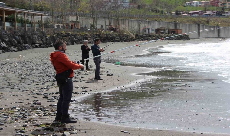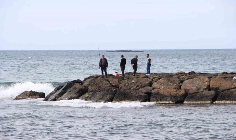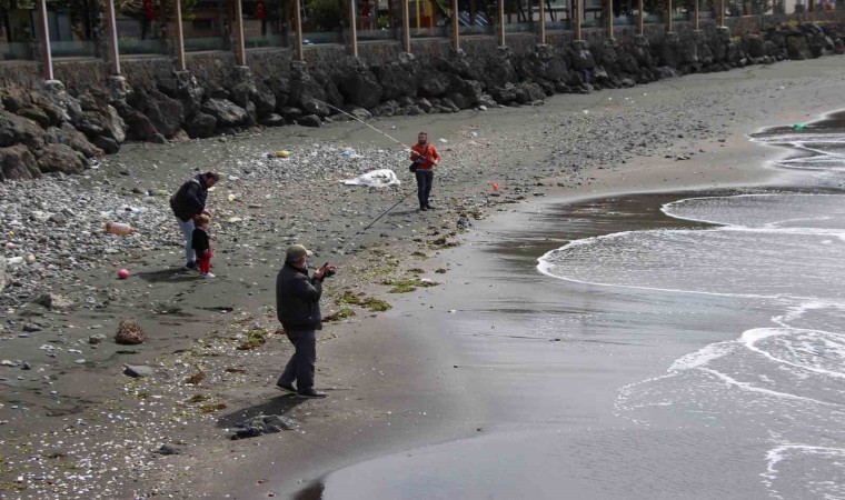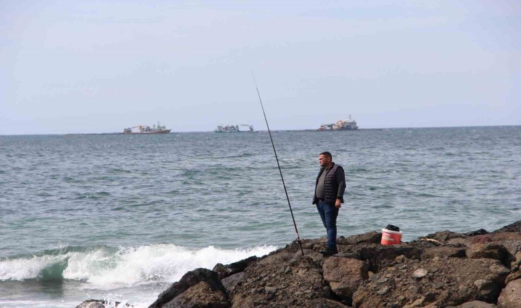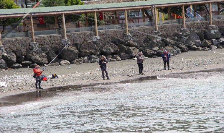 Trabzon’un Çarşıbaşı ilçesi açıklarında bulunan somon kafeslerinin yırtıldığını duyan vatandaşlar oltasını alarak sahile akın etti.