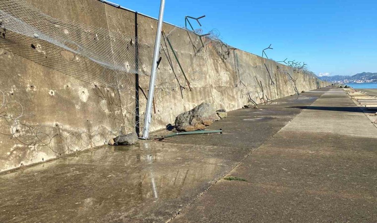 Trabzon’un Sürmene ilçesinde dün yaşanan fırtınada Yeniçam Tersanesi’ndeki askeri üs bölgesinde dalgaların oluşturduğu tahribat görüntülendi.