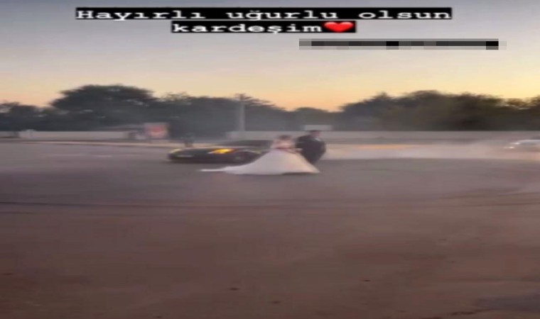 Aksaray’da trafiğe açık alanda yolun ortasında duran gelin ve damadın etrafında drift atan sürücü, cep telefonu kamerasına yansıdı. Kendini telefon kamerasıyla kayda aldıran sürücü, bir de görüntünün altına imzasını atarak, “Hayırlı uğurlu olsun kardeşim” notuyla sosyal medyada paylaştı.