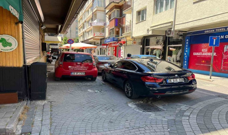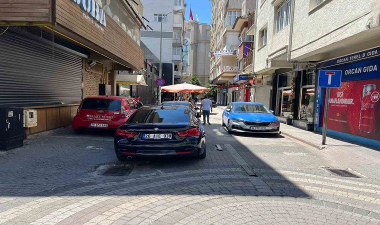 Eskişehir’de trafiğe kapalı olmasına rağmen motosikletli kuryelerin geçmesi nedeniyle esnafın sorun yaşadığı sokak, şimdi de duyarsız sürücüler tarafından kaldırımlarıyla birlikte park alanına çevrildi.