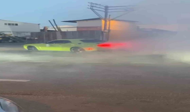 Bursa’nın Osmangazi ilçesi Küçükbalıklı Mahallesi’nde bir gurup geldikleri lüks araçlarıyla yol ortasında dakikalarca drift atıp tozu dumana kattı. Trafiği kesen sürücünün o anları çevredekilerin amatör kamerasına yansırken, trafik ekipleri görüntüler üzerine harekete geçti. Sürücüyü tespit eden polis, drift yapmaktan 33 bin lira idari ceza uyguladı.