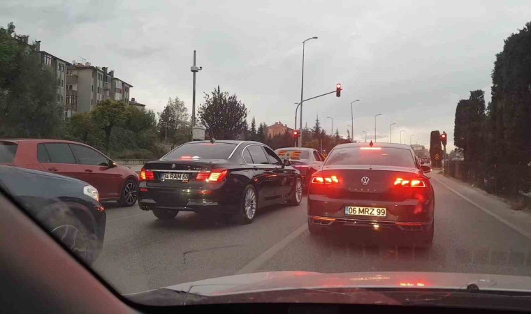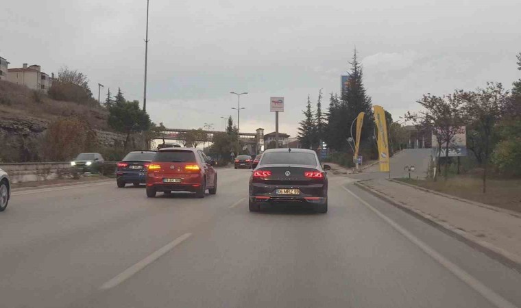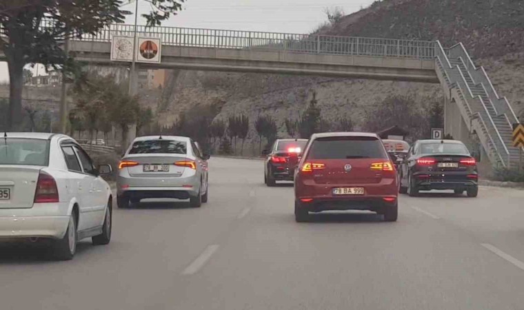 Karabük’te düğün konvoyundaki bazı araçların üç şeridi kapatarak ilerlediği ve önde seyreden diğer otomobillerin de zikzak çizerek trafiği tehlikeye düşürdüğü anlar cep telefonu kamerası ile görüntülendi.