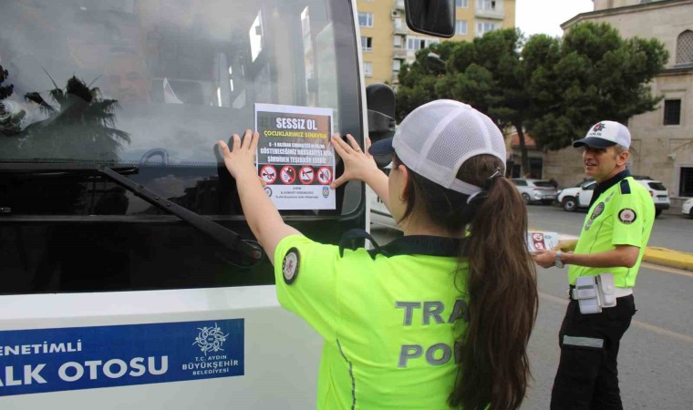 Ülke genelinde olduğu gibi Aydın’da da çok sayıdaki öğrencinin geleceği adına önemli sınavlardan olan Yükseköğretim Kurumları Sınavı (YKS) için geri sayım başladı. Bu çerçevede harekete geçen Aydın Trafik Denetleme Şube Müdürlüğü ekipleri, YKS’ye girecek öğrencilerin motivasyonlarını bozmamak ve dikkatlerini dağıtmamak için ‘Sessiz ol çocuklarımız sınavda’ sloganıyla örnek bir çalışmaya imza attı.