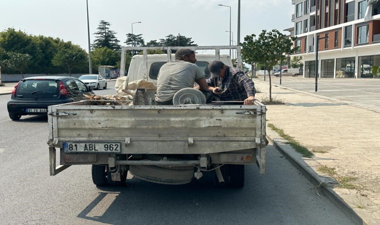 Düzce’de trafik kazalarının önlenmesi ve vatandaşların trafikte güvenliğinin sağlanması için uygulama yapan trafik ekipleri kamyonet kasasında yolculuk yapan düzensiz göçmenleri yakaladı. Ekipler, şahısları Sınır Kapıları Yabancı İşlemleri şubesi ekiplerine teslim ederken kamyonet sürücüsüne ise cezai işlem uyguladı.