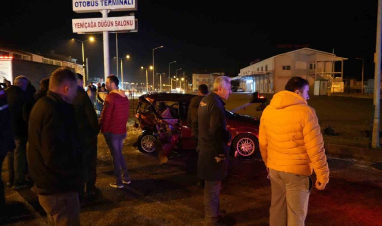 Kaza, Yeniçağa ilçesi girişinde bulunan ışıklı kavşakta meydana geldi. Edinilen bilgiye göre, trafik ışıklarında bekleyen Recep A. yönetimindeki 10 F 2757 plakalı otomobile, İstanbul istikametinde seyreden Yasin Emre Y. idaresindeki 34 AG 0756 plakalı otomobil çarptı. Çarpmanın etkisiyle otomobiller yolda savruldu. Kazada Ömer E., Mehmet K., Esaf K., Yasin Emre Y., Recep A. ve Zekai Berat C. yaralandı. İhbar üzerine bölgeye sağlık, polis ve itfaiye ekipleri sevk edildi. Ömer E., Mehmet K. ve Esaf K.’nin durumunun ağır olduğu öğrenilirken, yaralılar olay yerine gelen ambulanslarla hastanelere kaldırıldı. Öte yandan, Ömer E., Mehmet K. ve Esaf K. ve Recep A.’nın uzman çavuş oldukları öğrenildi.
