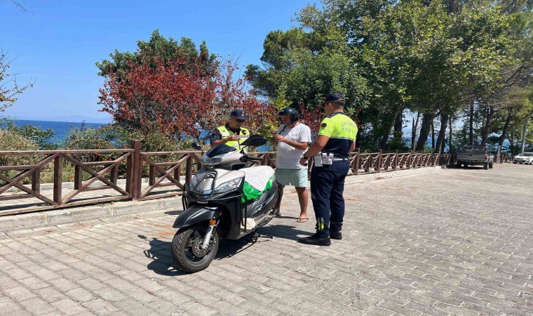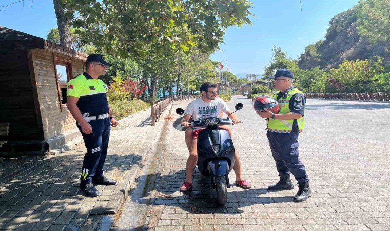 Aydın’ın Kuşadası ilçesine bağlı Güzelçamlı Mahallesi’nde, trafik jandarması tarafından Milli Park girişinde motosiklet, motorlu bisiklet ve elektrikli bisiklet sürücülerine yönelik trafik güvenliği konularında bilgilendirme yapıldı.