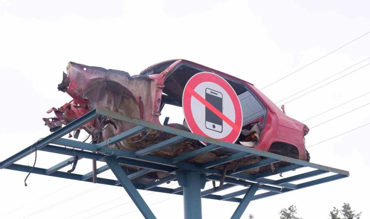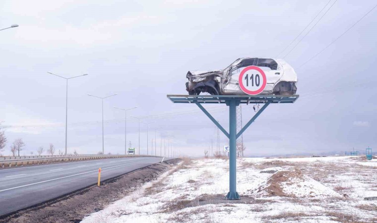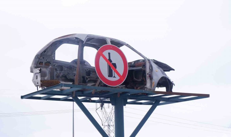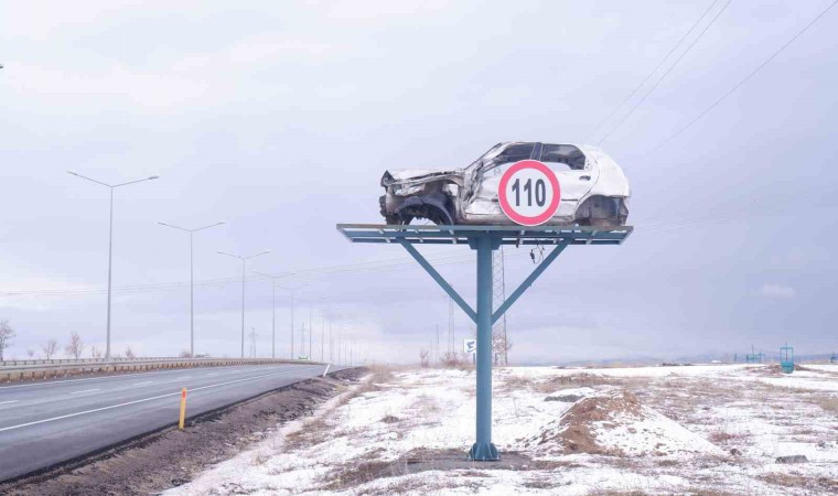 Erzurum’da trafik kazalarını önleme amacıyla yol kenarına kaza sonucu hurdaya dönmüş araçlar yerleştirilerek farkındalık oluşturuldu.