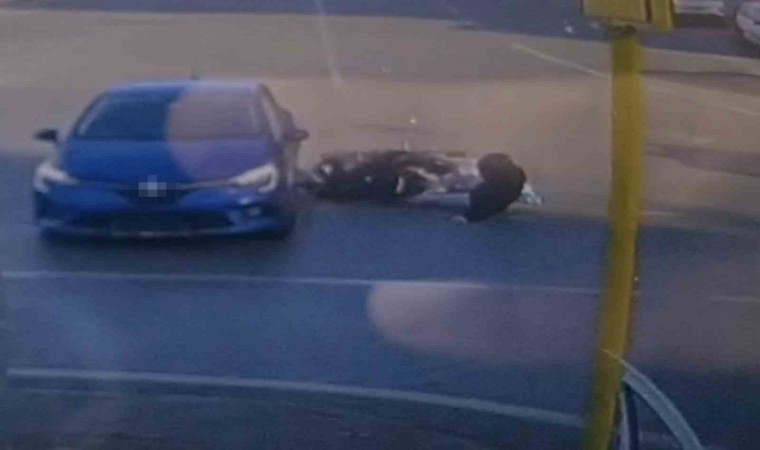 Edirne’de otomobille motosikletin çarpışması saniye saniye güvenlik kamerasına yansıdı.