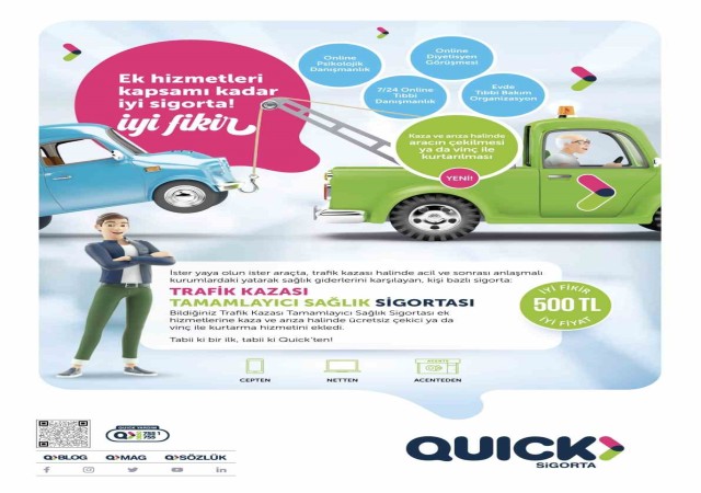 Geçtiğimiz yıl sağlık alanında önemli bir ürün olan Trafik Kazası Tamamlayıcı Sağlık Sigortası'nı piyasaya sunan Quick Sigorta, bu defa ürünü daha cazip hale getirerek müşterilerine sunduğunu açıkladı. Yaş, cinsiyet veya il sınırlaması olmadan her sigortalıya uygun fiyatlarla sunulan bu ürün, son güncellemelerle birlikte araç kazaları veya arıza durumlarında aracın çekilmesi veya vinçle kurtarılması hizmetlerini de içeriyor. Bu hizmetler yılda bir defa ve maksimum 3 bin TL ile sınırlıdır.