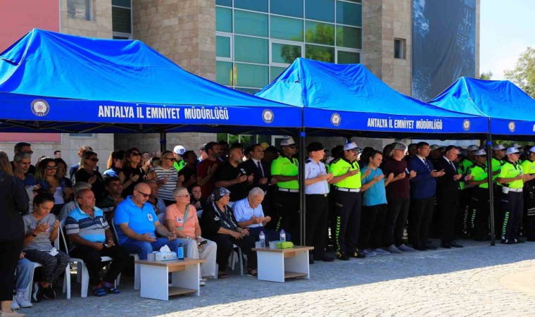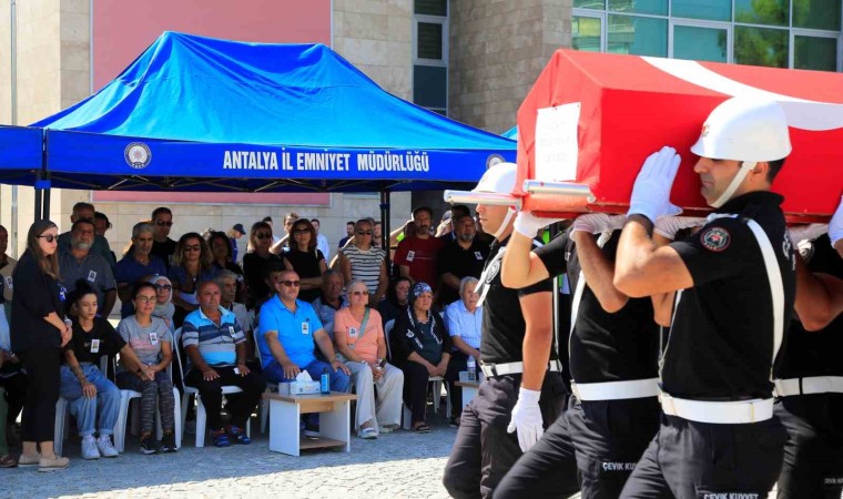 Geçirdiği trafik kazası sonrası hayatını kaybeden polis memuru, Antalya Emniyet Müdürlüğünde düzenlenen törenle arkadaşları tarafından son yolcuğuna uğurlandı.