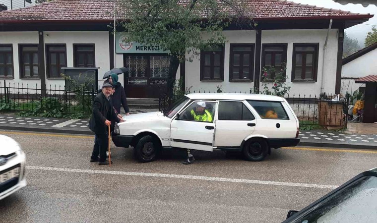 Bolu’nun Mudurnu ilçesinde yolda kalan 75 yaşındaki sürücünün yardımına trafik polisi yetişti. Çalışmayan aracı önce iterek çalıştırmaya çalışan polis, devamında kendisi direksiyon başına geçerek aracı çalıştırdı.