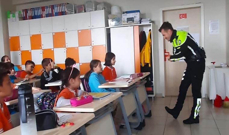 Manisa İl Emniyet Müdürlüğü, Trafik Tescil ve Denetleme Şube Müdürlüğü ekipleri eğitim ve bilgilendirme faaliyetlerine devam ediyor. Cemal Ergün İlkokulunu ziyaret eden ekipler öğrenim gören 35 öğrenciye temel trafik eğitimi ile emniyet kemeri takmanın önemi anlatıldı. Yaya geçitleri ile ilgili kurallar hakkında bilgilendirici eğitim veren ekipler öğrencilere kalemlik hediye ederek onları mutlu etti.