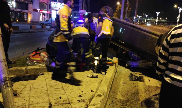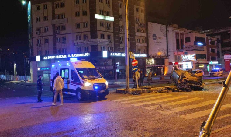 Kocaeli’nin İzmit ilçesinde seyir halindeki otomobil, trafik tabelasına çarparak takla attı. Karşı şeritte direğe çarparak durabilen otomobilde biri ağır 3 kişi yaralandı.