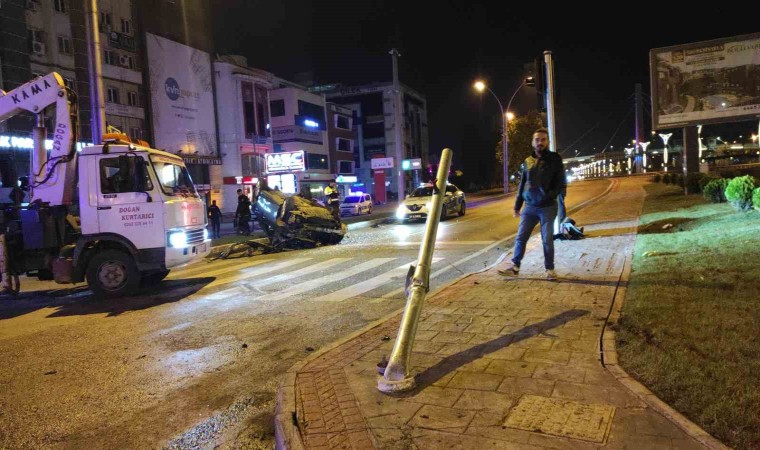 Kaza yapan otomobil hurdaya dönerken, araç çekici yardımıyla yoldan kaldırıldı. Polis kazayla ilgili inceleme başlattı.