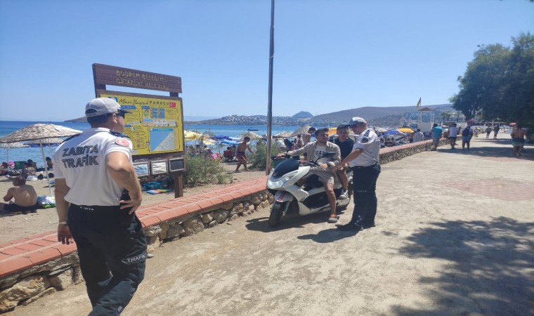 Bodrum Belediyesi Zabıta Müdürlüğü’ne bağlı Trafik Zabıta ekipleri, turizm sezonu ile birlikte yaya yoğunluğunun oluştuğu bölgelerde, motosiklet ve scooter sürücülerine yönelik uygulamalarını sürdürüyor.