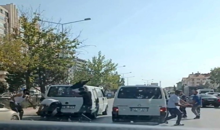 Konya’da trafikte yol verme meselesi nedeniyle iki sürücü arasında başlayan tartışma araçların cadde ortasında durmasıyla kavgaya dönüştü. Araçlardan inen 7 kişinin birbirine tekme tokat saldırdığı anlar cep telefonu kamerasıyla görüntülendi.