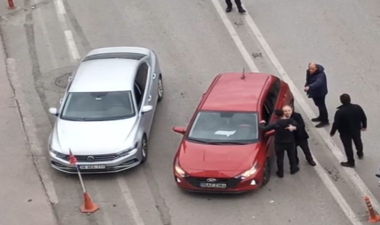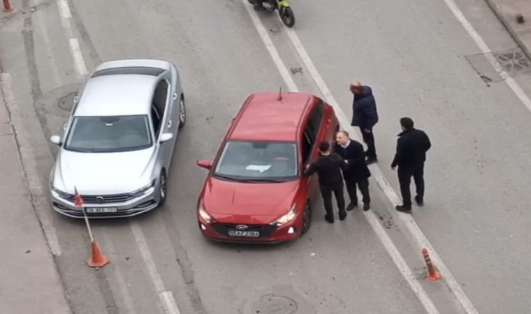Gerginlik büyümeden yatıştırılırken, sürücüler daha sonra yoluna devam etti. O anlar ise bir cep telefonu kamerasına yansıdı.