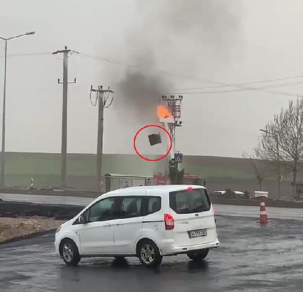 Bismil ilçesi kırsal Köseli Mahallesi’ndeki bir sokakta, sabah saatlerinde elektrik direği üzerindeki trafo bilinmeyen nedenle alev alarak yanmaya başladı. İhbar üzerine bölgeye sevk edilen itfaiye ekipleri, alevlere müdahale ederek söndürdü. O anlar, çevredekilerce cep telefonu kamerasıyla kaydedildi. (DHA)