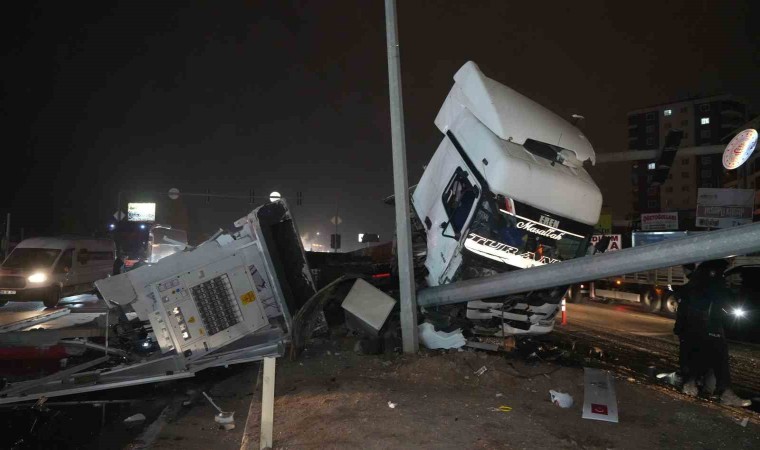 Kırıkkale’de kontrolden çıkan trafo yüklü tırın aydınlatma direğine çarptığı kaza anı güvenlik kamerasına yansıdı. Kazada, hurdaya dönen tırdaki baba ve oğul yaralandı.