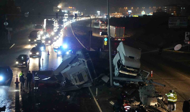 Kaza, akşam saatlerinde Kırıkkale-Çorum D200 kara yolu üzerindeki Yahşihan ilçesi Yeni Sanayi Kavşağı’nda meydana geldi. Edinilen bilgiye göre, M.A. idaresindeki 06 FH 7671 plakalı tır, refüjde bulunan aydınlatma direğine çarptı. Römorkunda trafo yüklü tırın hurdaya döndüğü kazada, sürücü M.A. ile yanında bulunan oğlu E.A. yaralandı. Güvenlik kamerasına yansıyan görüntüde, aydınlatma direğinin kaza anında tırın karşı yöne geçmesini engellediği ve muhtemel facianın önüne geçtiği görüldü.