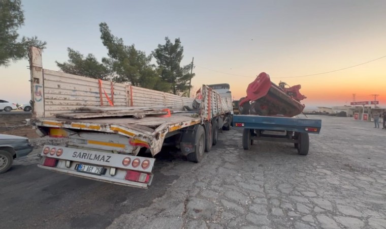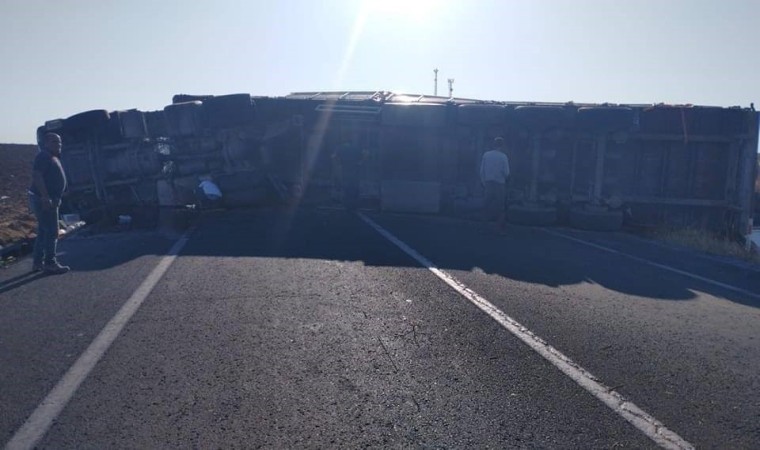 Şanlıurfa’da traktör ve tarım aleti taşıyan tırın devrilmesi sonucu 1 kişi yaralandı.