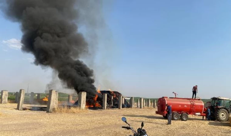 Traktörde çıkan yangın 150 ton saman balyasını küle çevirdi; o anlar kamerada
