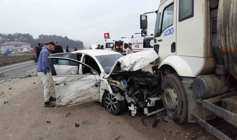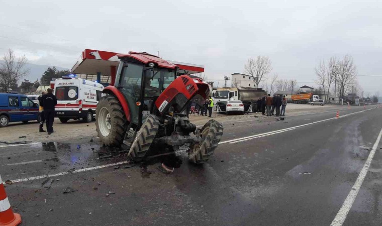 Kaza, Bolu-Mudurnu kara yolunda Abant Kavşağı mevkisinde meydana geldi. Edinilen bilgiye göre, Mudurnu’dan Bolu’ya seyir halindeki İ.T. idaresindeki 41 BS 674 plakalı traktör, benzinliğe dönmek isterken aynı istikamette seyreden S.E. idaresindeki 06 BFP 726 otomobille çarpıştı. Çarpmanın etkisi ile otomobil, benzinlikte park halinde duran 14 ACH 744 tıra çarparak durabildi. Meydana gelen kazada otomobilde bulunan 2 kişi yaralandı. Durum 112 Acil Çağrı Merkezi’ne bildirildi. İhbar üzerine bölgeye çok sayıda sağlık ve jandarma ekipleri sevk edildi. Sağlık ekipleri tarafından olay yerinde ilk müdahalesi yapılan yaralılar Bolu Abant İzzet Baysal Üniversitesi Eğitim ve Araştırma Hastanesi’ne sevk edildi. Traktör sürücüsü ve otomobilde bulunan diğer 3 kişi ise kazayı yara almadan atlattı. Kazada otomobil ve traktör hurdaya dönerken, tırda maddi hasar oluştu. Jandarma ekipleri kazadan dolayı kara yolunda aksayan trafiği kontrollü şekilde sağladı.