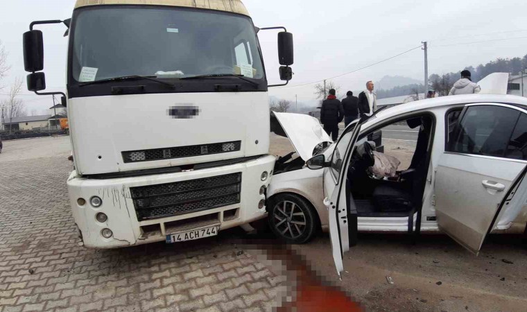 Bolu-Mudurnu kara yolunda traktör ile çarpışarak savrulan otomobil, park halindeki tıra çarparak durabildi. Meydana gelen kazada otomobilde bulunan 2 kişi yaralandı.