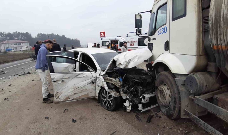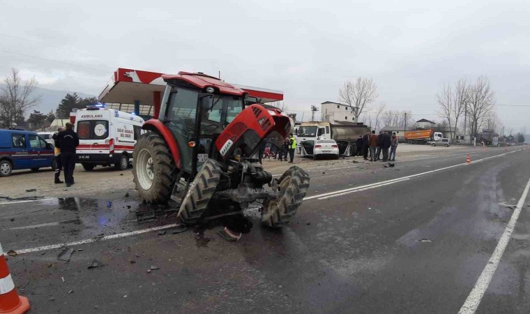 Kaza, Bolu-Mudurnu kara yolu Abant Kavşağı mevkisinde meydana geldi. Edinilen bilgiye göre, Mudurnu’dan Bolu’ya seyir halindeki İ.T. idaresindeki 41 BS 674 plakalı traktör, benzinliğe dönmek isterken aynı istikamette seyreden S.E. idaresindeki 06 BFP 726 otomobille çarpıştı. Çarpmanın etkisi ile otomobil, benzinlikte park halinde duran 14 ACH 744 tıra çarparak durabildi. Meydana gelen kazada otomobilde bulunan 2 kişi yaralandı. Traktör sürücüsü ve otomobilde bulunan diğer 3 kişi ise kazayı yara almadan atlattı. Kazada otomobil ve traktör hurdaya dönerken, tırda maddi hasar oluştu.