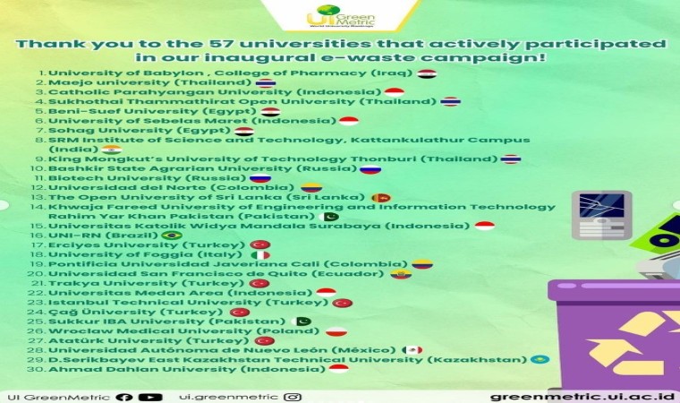 Ayrıca bu yıl UI GreenMetric tarafından başlatılan elektronik atık kampanyasına katılan Trakya Üniversitesi, dünya genelinde kampanyaya katılan 57 üniversite arasında yapılan sıralamada 21’inci sıraya yerleşti. Üniversitede 2021-2023 yılları arasında toplam 7 bin 370 kilogram e-atık toplanarak lisanslı geri dönüşüm firmalarına teslim edildi ve bu atıklar ekonomiye geri kazandırılmış oldu.