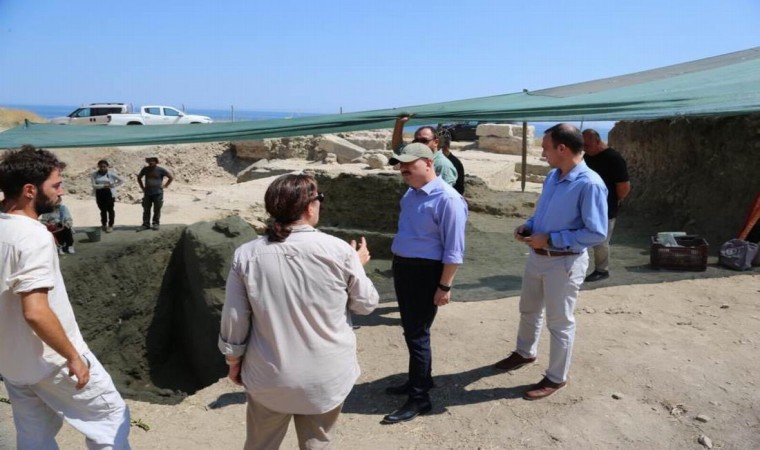 Milattan Önce 600’lü yıllara dayanan bir medeniyete ev sahipliği yaptığı bulgusuna ulaşılan Perinthos Antik Kenti’nde, Kültür ve Turizm Bakanlığının desteğiyle Prof. Dr. Zeynep Koçel Erdem başkanlığında Mimar Sinan Güzel Sanatlar Üniversitesi Arkeoloji Bölümü tarafından kazı çalışmaları devam ediyor. Marmaraereğlisi Kaymakamı Gökhan Gürbüzerol, kazı alanını ziyaret ederek, çalışmalar hakkında bilgi aldı. Prof. Dr. Zeynep Koçel Erdem, “Tiyatro yapısı Trakya’nın en büyük tiyatrosudur. Kazı çalışmaları sahne binasında yürütülmektedir. Yapının topografyaya göre planlandığı ve kayalık bir alandan faydalanarak, kayaların düzeltilmesi ile inşa edildiği anlaşılmıştır. Tiyatro yüzeyinde yaklaşık 5 metrelik bir dolgu tabakası vardır. Eksi 4.5 metre kotunda seyirci oturma sıralarına ve aralarındaki merdivenlere ait parçalara rastlanmıştır. Kazı sırasında elde edilen çok sayıda seramik ve çeşitli yüzey bulgusu yapının Erken Roma Dönemi’nden Geç Antik Dönem’e kadar kullanıldığını göstermektedir. Sahne binası cephesinin süslemelerine ilişkin çok sayıda renkli mermer, renkli duvar, siyasi ve süslemeli alçı kabartma parçası ele geçmiştir” dedi.