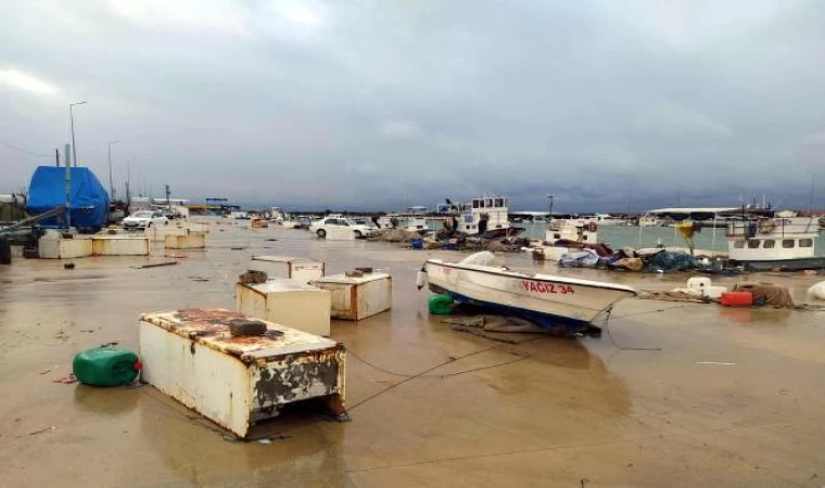 Trakya'nın yüksek kesimlerini kar yağışı beyaza bürürken, Edirne'nin Saros Körfezi kıyısındaki Enez ilçesinde şiddetli lodos etkili oldu. Sabaha karşı hızı zaman zaman 100 kilometreyi bulan lodos, Enez Balıkçı Barınağı'ndaki tekneleri sürükledi. Denizin taşması nedeniyle kıyıya sürüklenen bazı teknelerde hasar meydana geldi. Teknelerin yanı sıra balıkçıların avcılıkta kullandığı malzemeler de kullanılamaz hale geldi. Balıkçılar, kıyıya sürüklenen tekneleri onarmak için çalışmalarını sürdürüyor. (DHA)