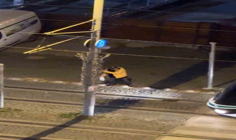 İlginç olay, gece saatlerinde İzmit ilçesi Şehabettin Bilgisu Caddesi’nde meydana geldi. Alkollü olduğu görülen vatandaş, tramvayın geçtiği rayların üzerine yattı. Keyif uykusuna dalan şahsın rahatı, tramvayın gelmesi ile bozuldu. Kibarca yerden kalkan vatandaş, bekleyen tramvaydan özür dileyerek yol verdi. O anlar çevredeki vatandaşlar tarafından kaydedildi. Görüntüleri izleyenler gülmekten kendilerini alamadı.