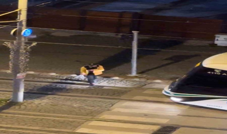 Kocaeli’de komedi filmlerini aratmayan bir olay gerçekleşti. Tramvay yolunda keyif uykusuna yatan kişinin rahatını vatman bozdu. Yoldan kalkan vatandaş, kibarca tramvaya yol verdi.