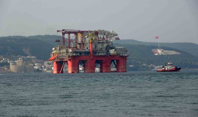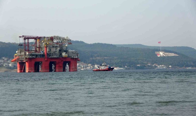Çanakkale Boğazı’ndan geçen 120 metre boyunda, 77 metre genişliğinde, yaklaşık 60 metre yüksekliğindeki ‘Transocean Barents’ Petrol Platformu Marmara Denizi’ne doğru yol aldı.