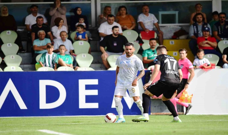53. dakikada Manisa FK’da Oğuz’un ceza sahası içinde kafa vuruşunda top üst direkten oyun alanına döndü.