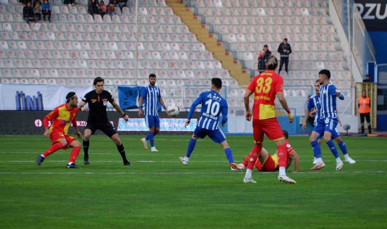 8. dakikada Erzurumspor’um sol kanattan kullandığı serbest vuruşta caza sahası içerisinde oluşan karambolde top Eren Tozlu’nun önünde kaldı. Kaleciyle karşı karşıya kalan Eren Tozlu topu ağlara gönderdi. 1-0