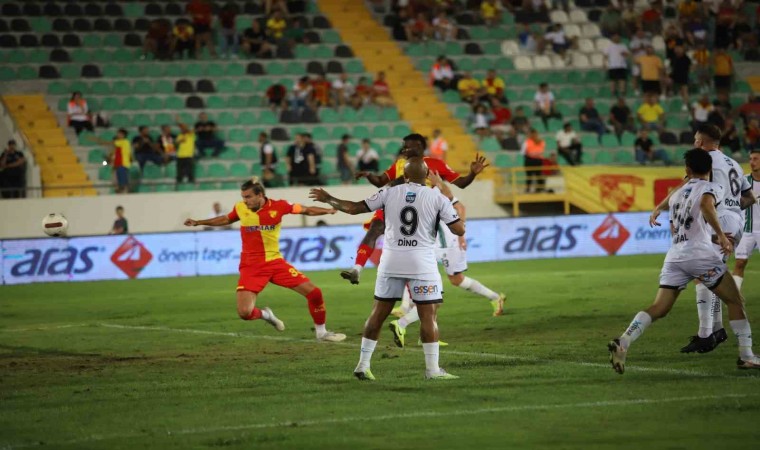 4. dakikada Göztepe’nin sağ kanattan kullandığı köşe vuruşunda ceza sahası içerisinde Erdi’nin ters vuruşunda meşin yuvarlak az farkla kale direğinin yanından kornere çıktı.