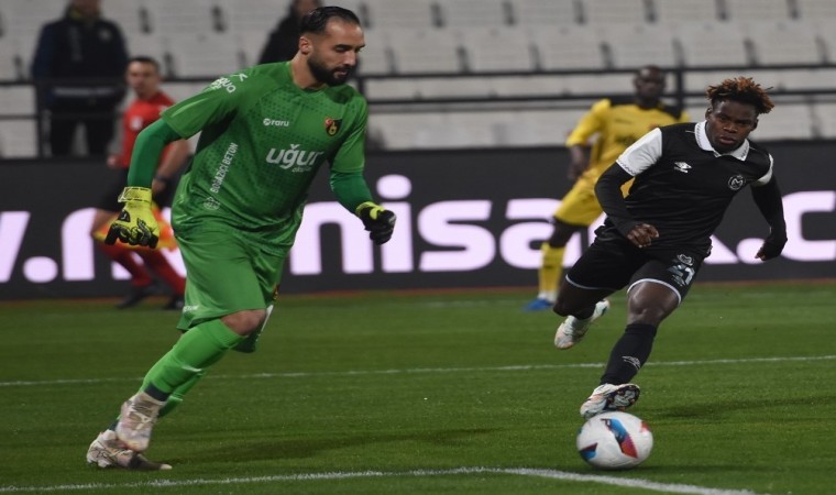 47. dakikada sol kanattan gelişen Manisa FK atağında ceza sahasının hemen önünden Osuji’nin çektiği şutu kaleci İsa uzanarak yakaladı.