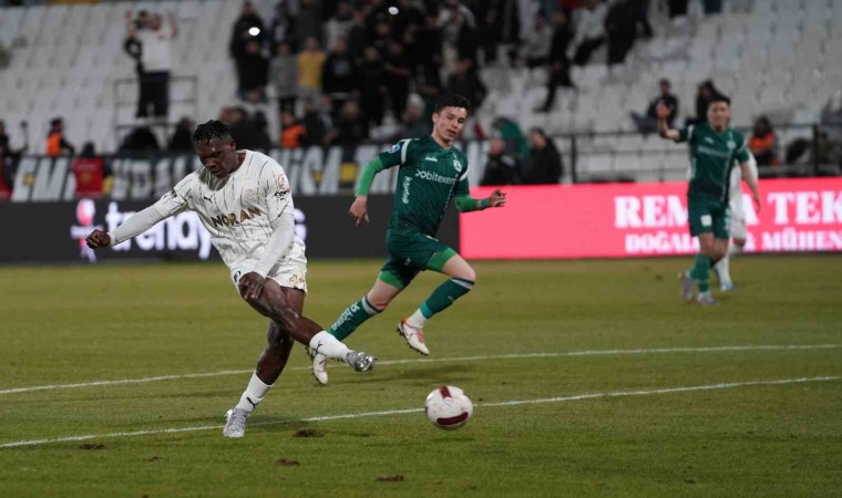 50. dakikada Manisaspor savunmasının hatalı pasında topu önüne alan Şahin’in uzaktan sert şutunda meşin yuvarlak kale direğinin yanından auta gitti.