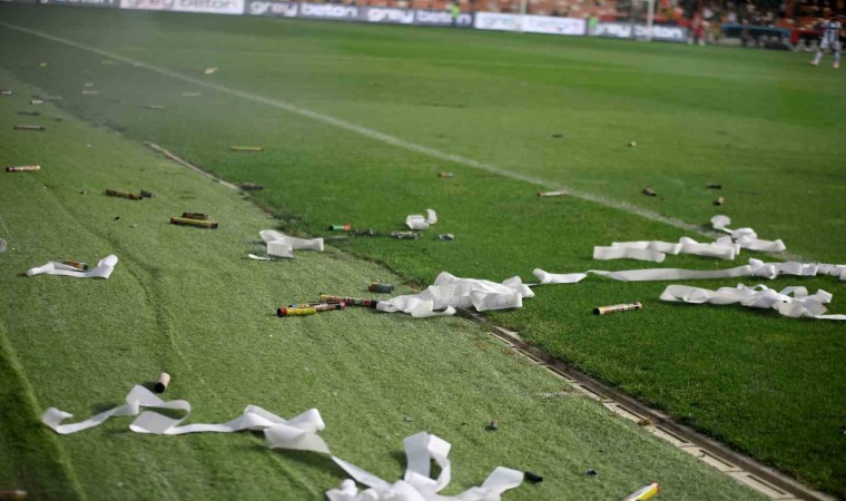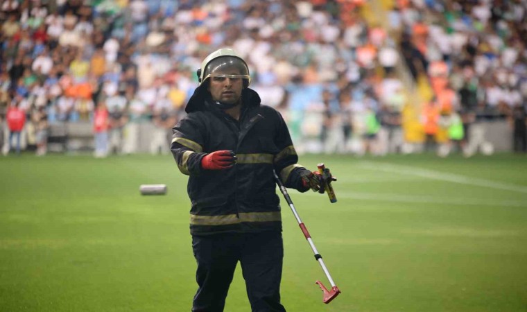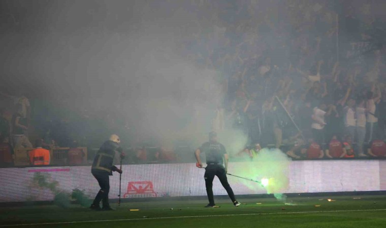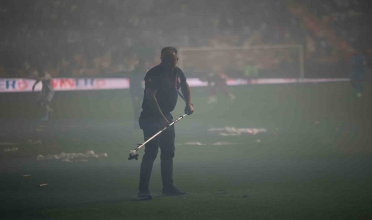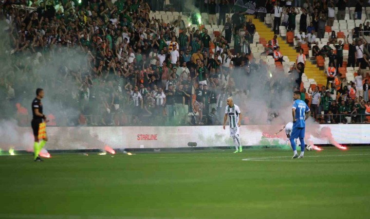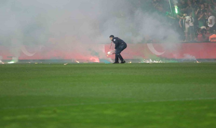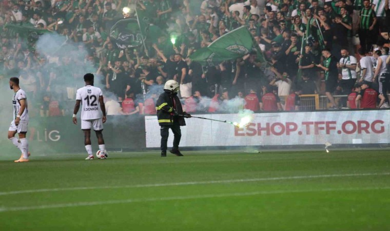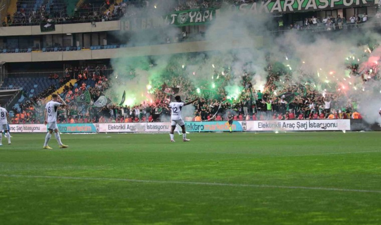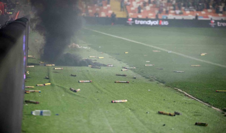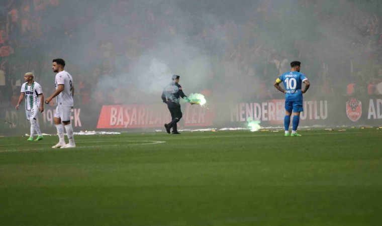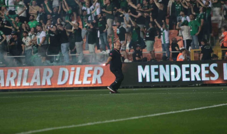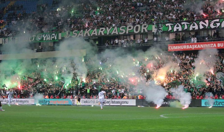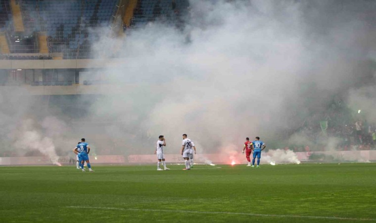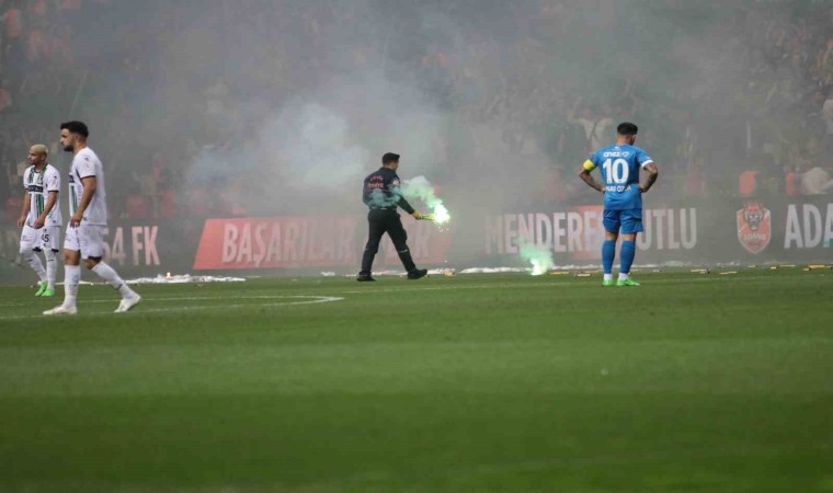 TRENDYOL 1. LİG'İN PLAY-OFF FİNAL MÜSABAKASINDA SAKARYASPOR İLE BODRUM FK YENİ ADANA STADYUMU'NDA KARŞILAŞIYOR. SAKARYASPOR TARAFTARLARININ SAHAYA MEŞALE ATMASI ÜZERİNE OYUN 5 DAKİKA DURDU.