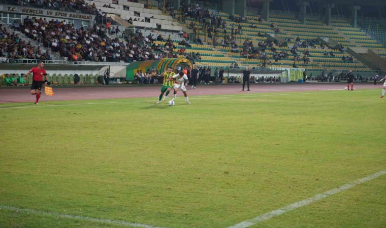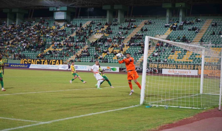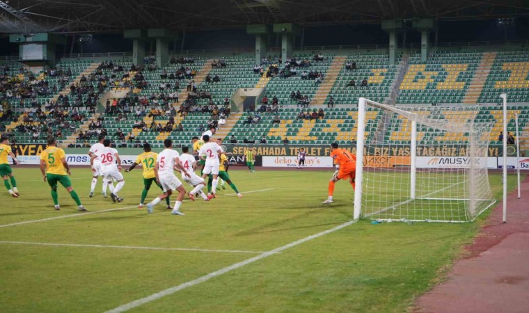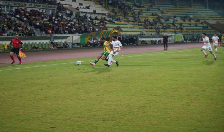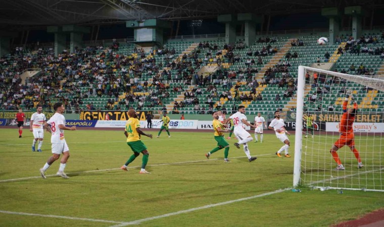 35. dakikada, defanstan gönderilen topu alarak kaleciyle karşı karşıya kalan Mehmet Güneş’in vuruşunda meşin yuvarlak auta çıktı.