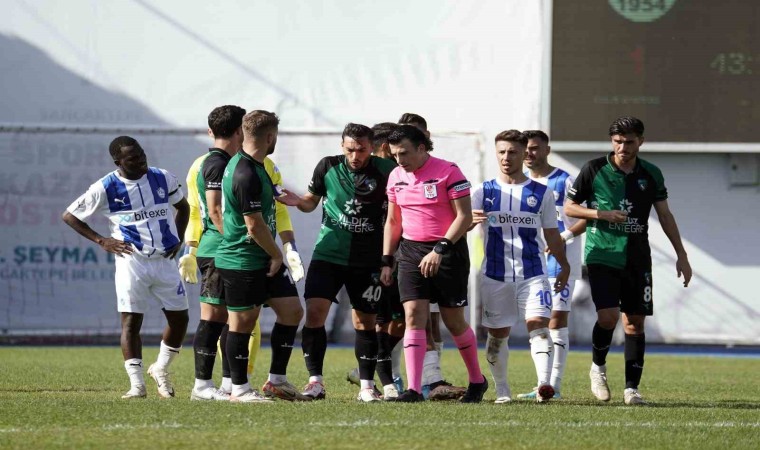 83. dakikada James Adeniyi’nin Emir Ortakaya’ya orta sahada hava topu mücadelesinde yaptığı müdahale sonrası hakem Ömer Faruk Turtay, Adeniyi’ye ikinci sarı karttan kırmızı kart gösterdi.