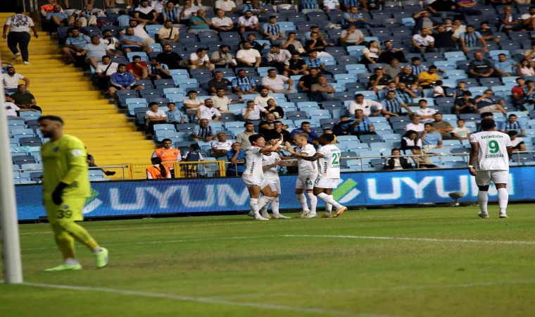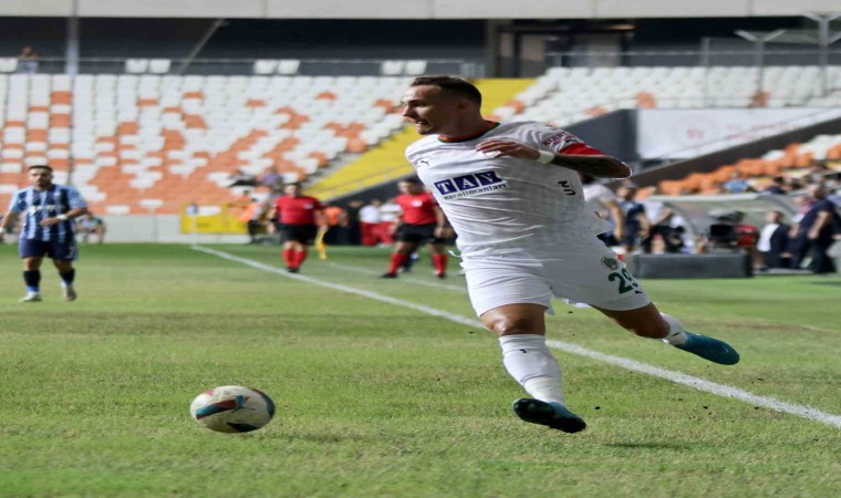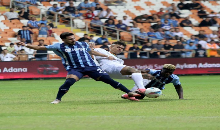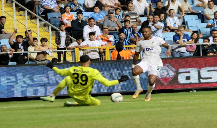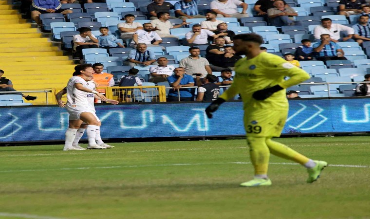 28. dakikada Adana Demirspor’un sağ kanattan kullandığı köşe vuruşunda kale sahası içinde yükselen Manev’in kafa vuruşunda meşin yuvarlak direkten döndü.