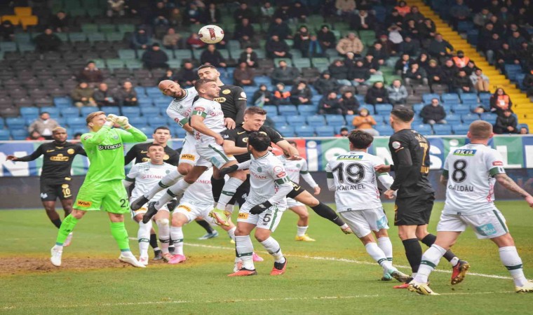 26. dakikada Konyaspor ceza sahasının içerisinde oluşan karambolde topla buluşan Benhur’un vuruşunda meşin yuvarlak dışarı gitti.